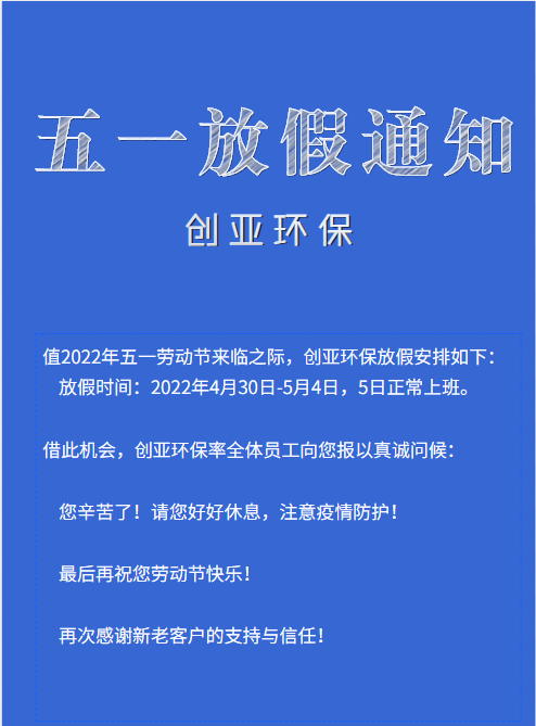 2022年创亚环保五一劳动节放假公告