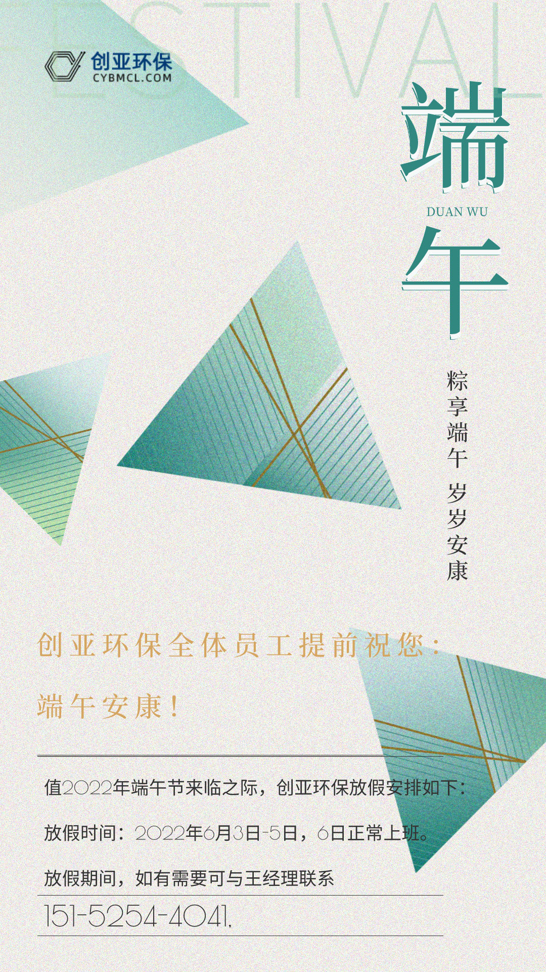 2022年创亚环保端午节放假公告